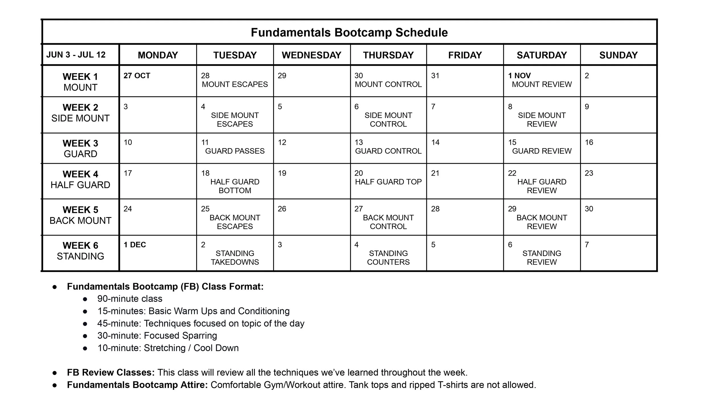 You’re also welcome to attend all the other classes during the 6 weeks of Bootcamp.